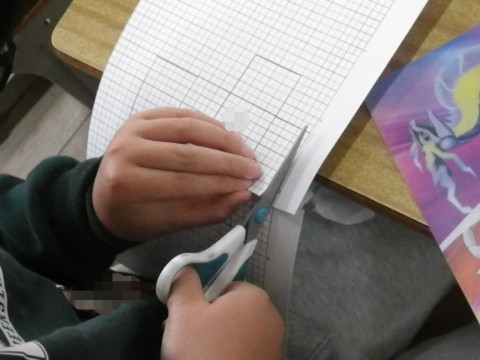 2組は算数,工作用紙で,直方体の箱を作っていました。