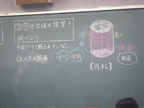 算数では。直方体や円柱の性質について学習していました。