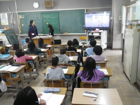 2組は算数,かぞえぼうをつかったり,点をつないだりして,いろいろな形をかいていました。