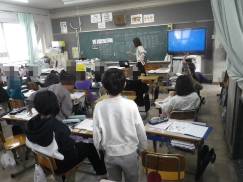 1組は算数で,デジタル数字からいろいろなことを考えていました。