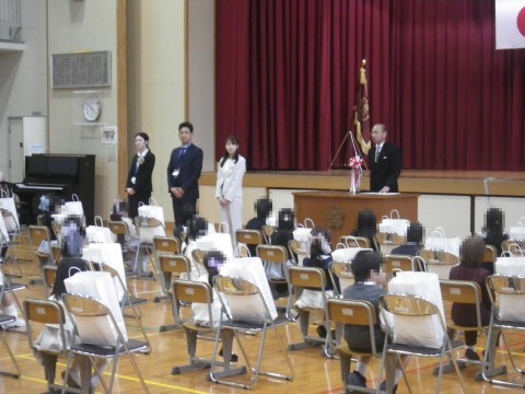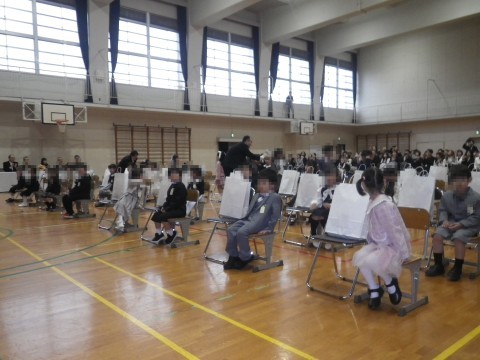 令和8年度の始業式を行いました。新1年生が39名入学しました。校長の話もしっかり聞き,ありがとうごさいますのお礼もしっかり言えました。担任の先生やこれからお世話になる先生の紹介をして,入学式を終えました。校庭の桜も入学式を祝ってくれました。
