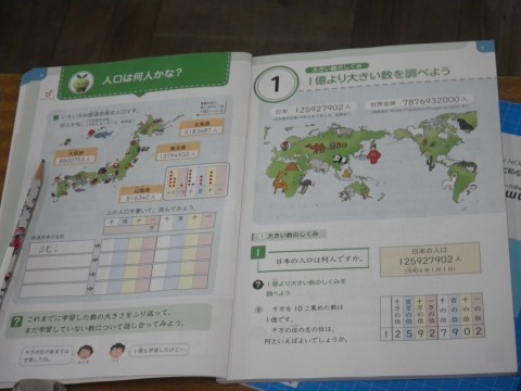 1組も2組も算数,人口を題材に,1憶を超える数について学習していきます。