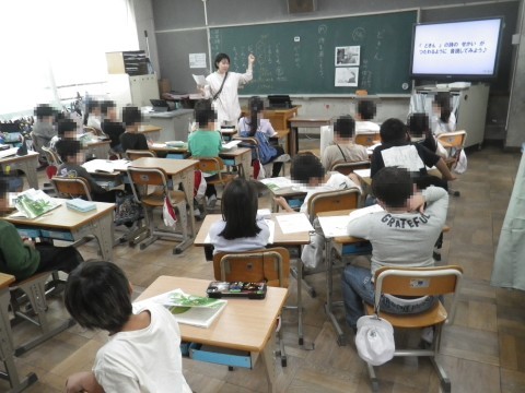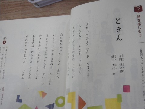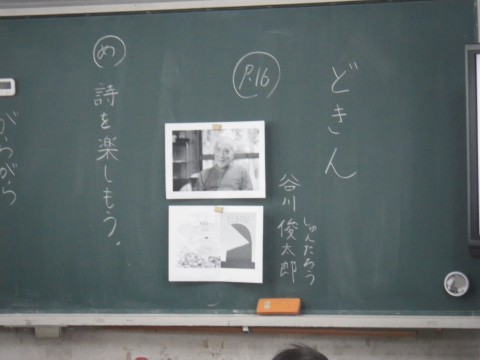 2組は国語,谷川俊太郎のどきんの詩を学習していました。