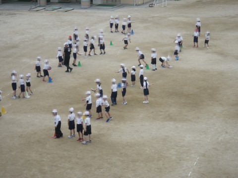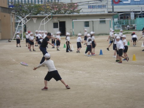 体育は,学年合同でフリスビーをしていました。