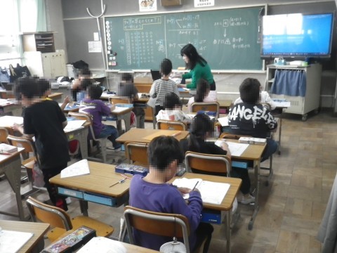 1組は算数,昨日の続きでかけ算の研鑽の仕方を考えていました。