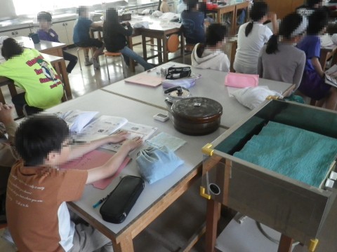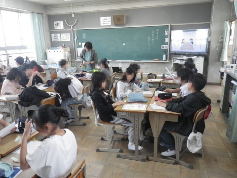 1組は家庭科,この後,煎茶を入れて飲みます。その説明を聞いていました。