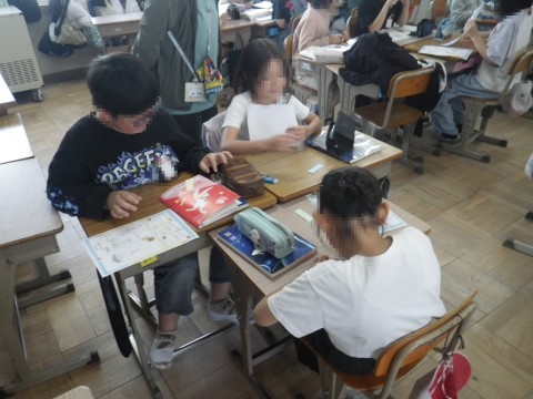 2組は国語,グループ毎にカードを使って,自己紹介していました。