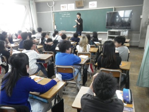 1組は社会,これまでの学年の社会科で学んだことと,6年生の社会科で学ぶことの違いについて,先生の話を聞いていました。