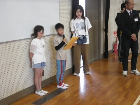 朝会の進行は,代表委員会の児童が行います。朝会では,まず全校児童で校歌を歌います。(1学期は1番)