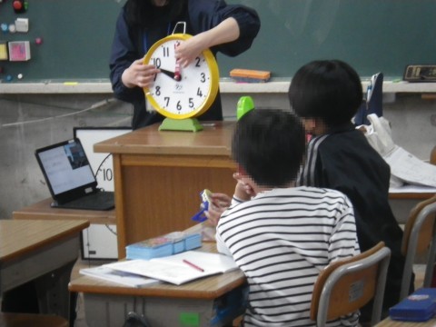 1組は算数,時刻の学習をしていました。