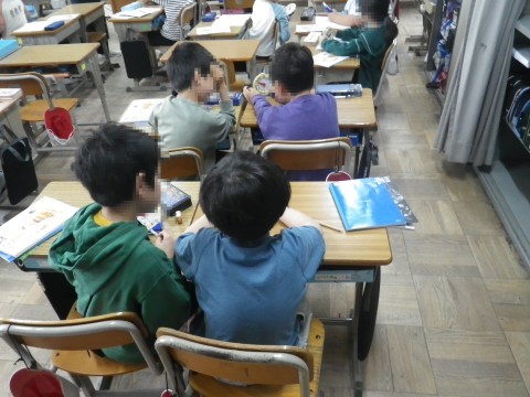 2組は国語,わたしの最高の一日についての作文を書いていました。