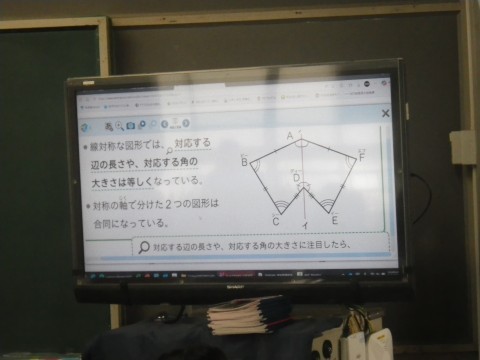1組は算数,線対称の学習をしていました。