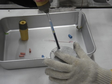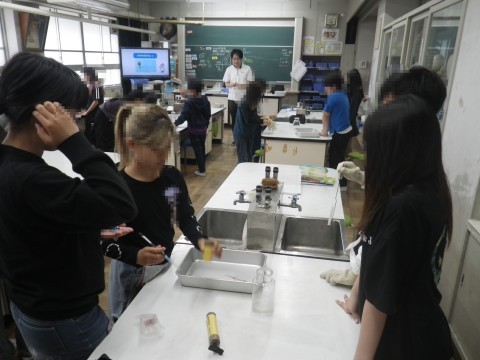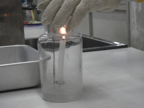2組は理科,物が燃えた後の空気の変化について実験して調べていました。