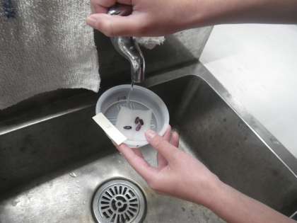 理科では、水、温度、空気などの条件を変えた種子を用意して、発芽の様子を観察します。