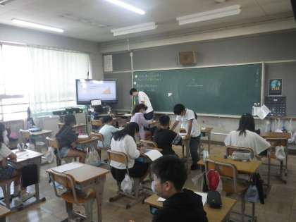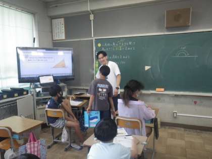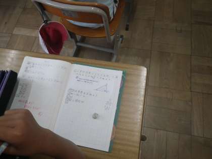 算数では、三角形の角のきまりを使って、核の大きさを計算します。式を立てるに苦労しています。