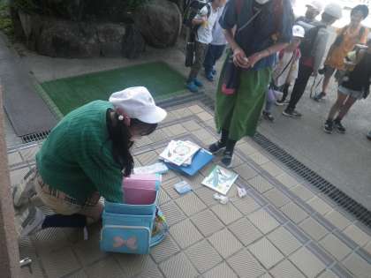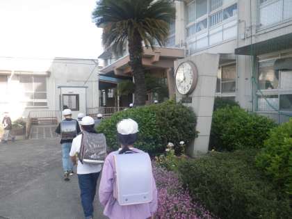 本日も晴天、気温も高くなりそうです。低学年の子が困っていることに気づき、5年生が助けてあげています。とても素敵な行動です。