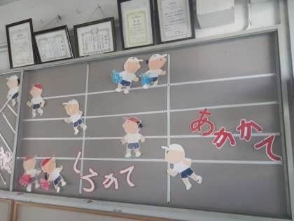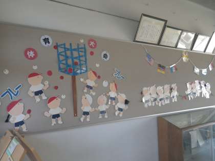 玄関前には、体育大会に向けての掲示が飾られています。いよいよ来週の土曜日が本番です。練習も大詰めを迎えます。けがの無いように取り組みましょう。