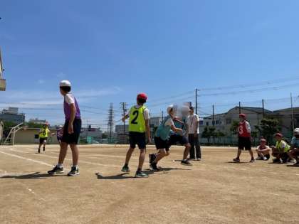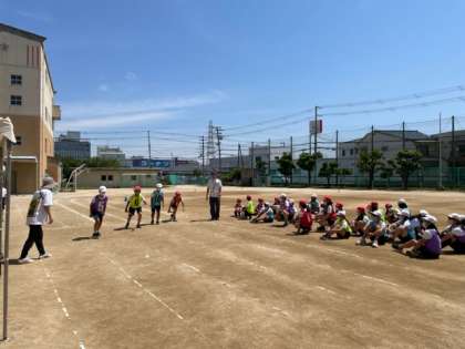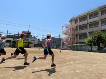 今日の15分休憩に高学年のリレーの練習をしていました。とても良い表情をしています。