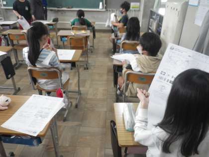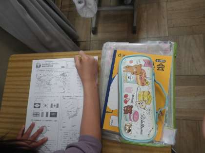 社会「日本の国土と人々のくらし」のプレテストを行います。わからなかったところは教科書やノートを見てすべて答えるようにします。