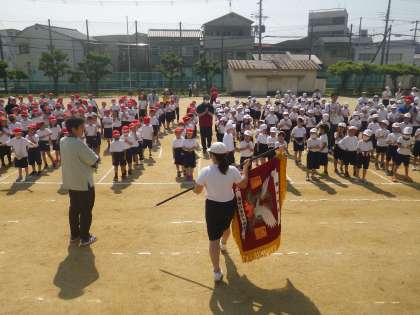 点数の発表や優勝旗・準優勝盾のもらいかたの練習もしました。