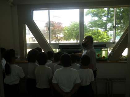 理科では、メダカの誕生について学習をしています。学校のメダカを観察します。家で育てている人もいるようです。