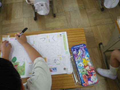 書写の学習です。鉛筆を正しく持って取り組みます。