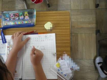算数では、ひき算のひっ算の学習をしています。