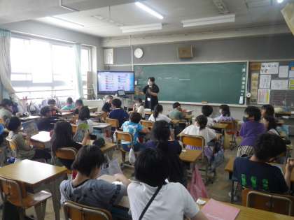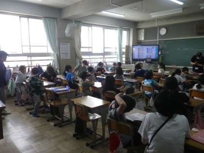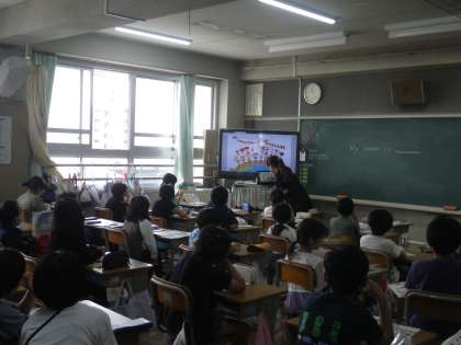 英語の学習です。「My name is〜」〜で自己紹介とあいさつをしています。