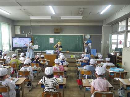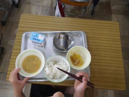 1年生の教室では、お茶碗のご飯粒を残さない食べかたを教えてもらています。上手にできるかな。