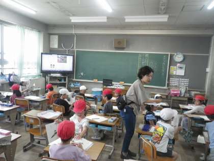 国語「くちばし」では、赤白のチームに分かれて「問題」「答え」の担当を決め、二人で音読をしています。役割分担することで、「問題」と「答え」を確かめています。