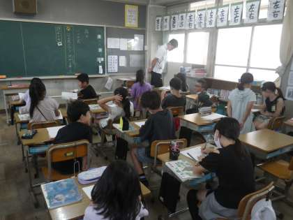国語「一つの花」に入ります。この題名から、どんなお話かを想像して、ノートにまとめ、友だちと共有します。