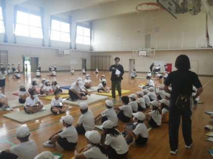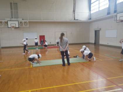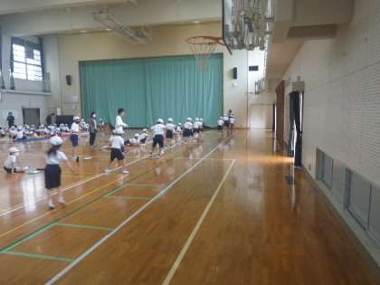 今日は、体育館で各種目が実施されています。上の学年が下の学年のサポートをしています。