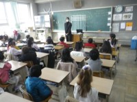 図工の学習では、サンタプレートを制作しています。折り紙を使ってサンタを作ります。