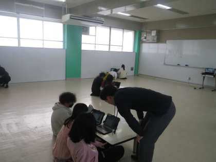 学校群の取組のひとつ「言語力向上授業」では、大仙小学校とオンラインで、授業をしています。互いに作った「一行詩」から、題名が何かを考えています。やり取りは、チャット機能やマイクを使って行います。