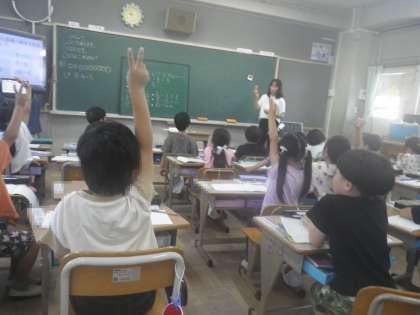 算数の学習です。「ちがいはいくつ」の学習をしています。たし算になるのかな?ひき算になるのかな??
