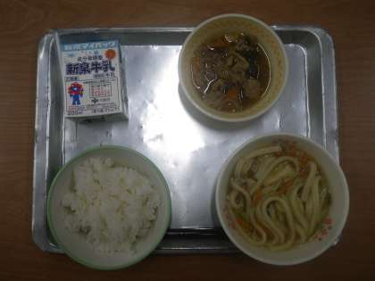 今日の献立:ご飯・牛乳・昆布うどん・なすと豚肉の炒め煮