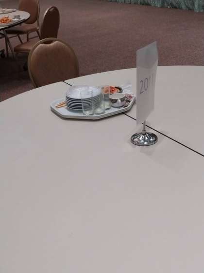 食べ終わった後に食器をまとめている