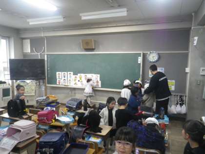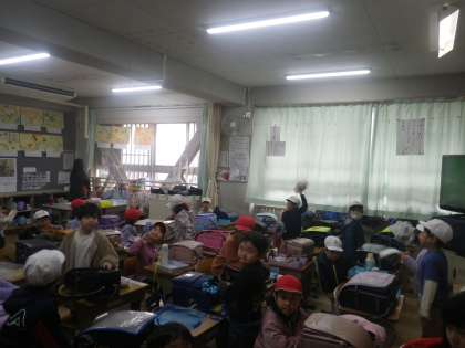 帰る準備をしている様子です。自分の帰る用意もして、係の仕事もしています。できることがどんどん増えてきています。