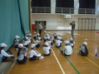 体育ではしっかり準備運動をして,サークルシュートゲームをしていました。