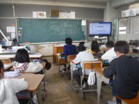 1組は算数,まとめの練習問題をしています。2組は国語,ロボットについてグループで...