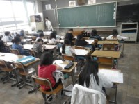 1組は国語,まとめのプリントをしていました。2組は算数,工夫して,大きな数の計算...