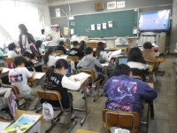 1組は国語,説明文「未来につなぐ工芸品」の学習をしていました。2組は外国語活動,...