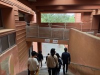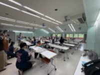 入所式の様子です。施設の方から布団の準備と片づけについての説明を受けています。