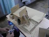 1組は図工,いろいろな建物を作っていました。クラス全員分が出来たら,合わせて町を...