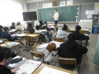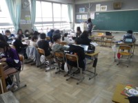 1組は社会,テストの答え合わせをしていました。2組は国語,伝えたい日本文化をタブ...