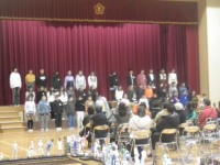 全校朝会で,卒業コンサートの合奏を披露しました。1年生~5年生の子どもたちが真剣...