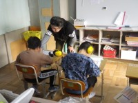 先生と一生懸命学習に取り組んでいました。