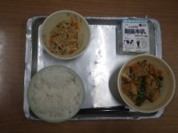今日の献立:ご飯・牛乳・豚肉と野菜の生...