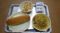 今日の献立:黒糖パン・牛乳・スープ煮・...