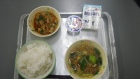 今日の献立:ご飯・牛乳・ワンタン・麻婆...